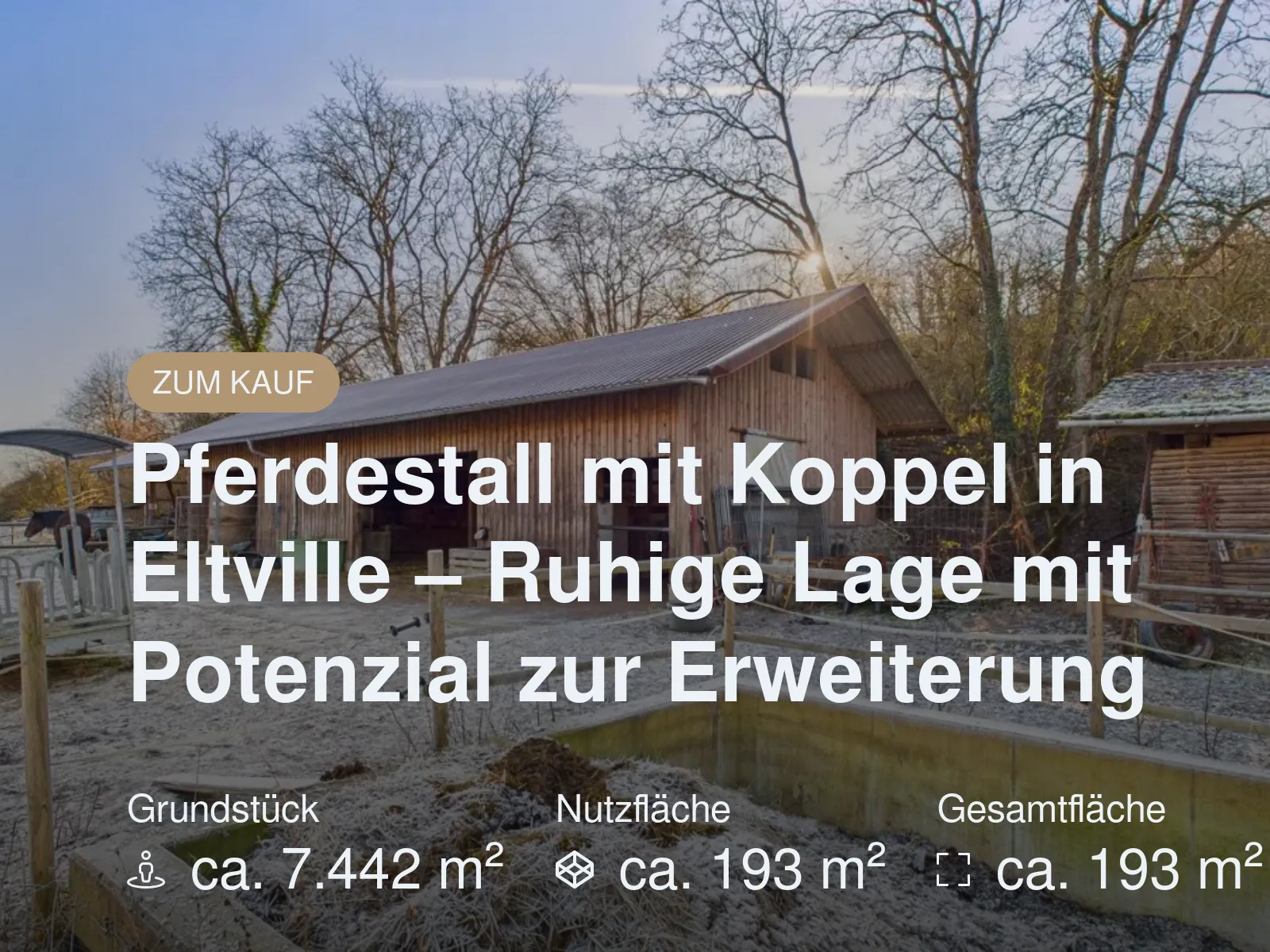 • Neu im Angebot: Pferdestall mit Koppel in Eltville – Ruhige Lage mit Potenzial zur Erweiterung