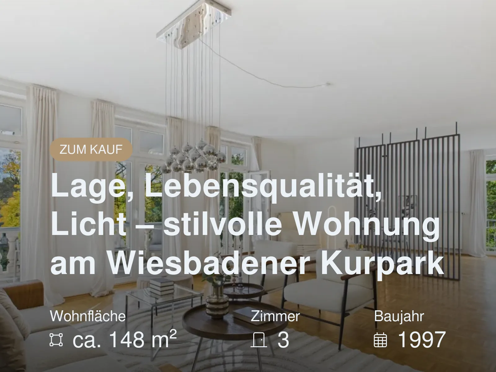 • Neu im Angebot: Lage, Lebensqualität, Licht – stilvolle Wohnung am Wiesbadener Kurpark