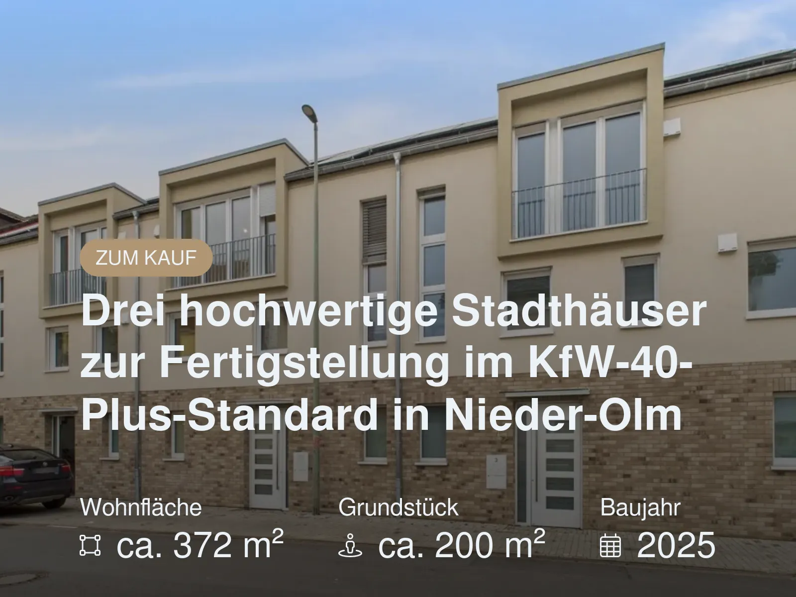 • Neu im Angebot: Drei hochwertige Stadthäuser zur Fertigstellung im KfW-40-Plus-Standard in Nieder-Olm