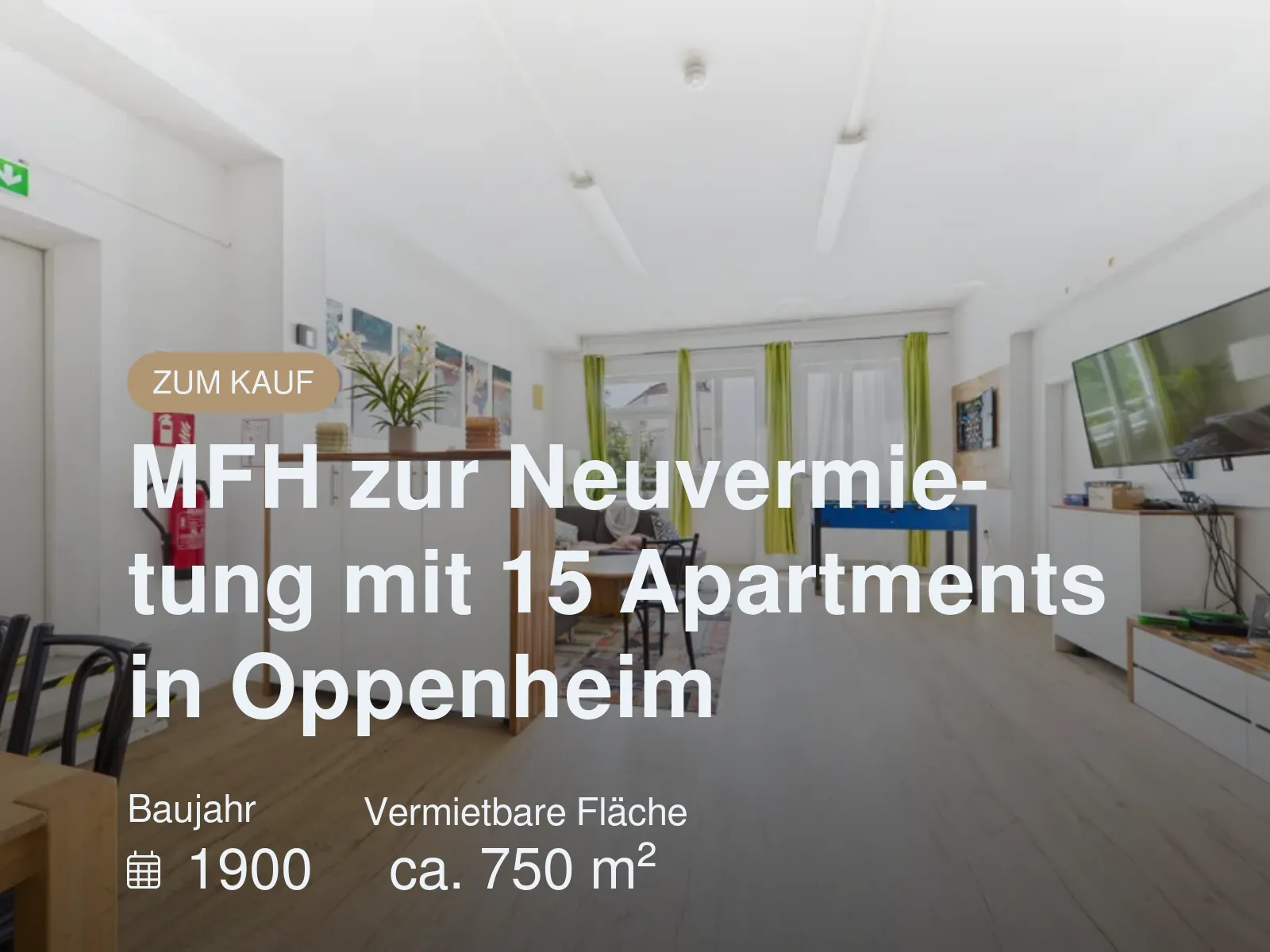 • Neu im Angebot: MFH zur Neuvermietung mit 15 Apartments in Oppenheim
